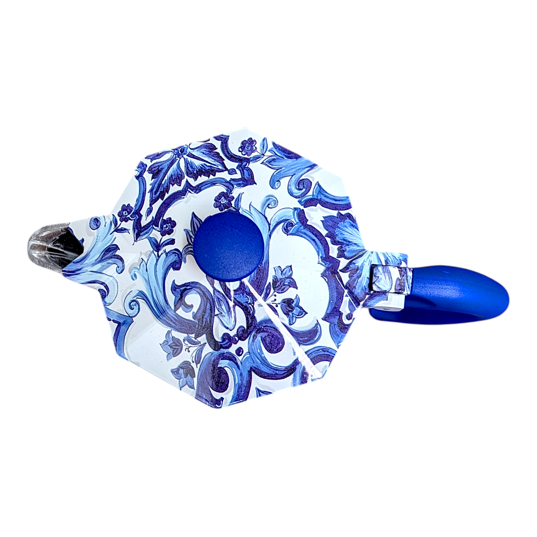 Sicilian Blue Artistry in a Classic 6 Cup Moka Pot