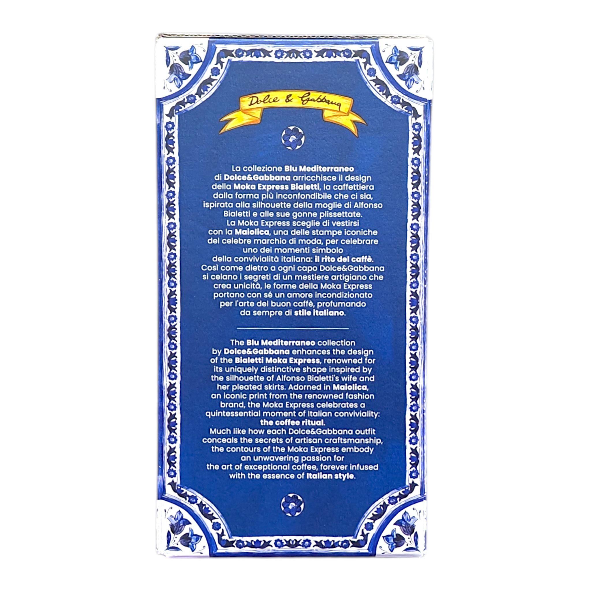 The Bialetti x Dolce & Gabbana Blue Majolica Moka Express is a celebration of Italian craftsmanship and design. Inspired by traditional Sicilian ceramic tiles, the intricate blue and white pattern transforms the iconic stovetop espresso maker into a true statement piece.