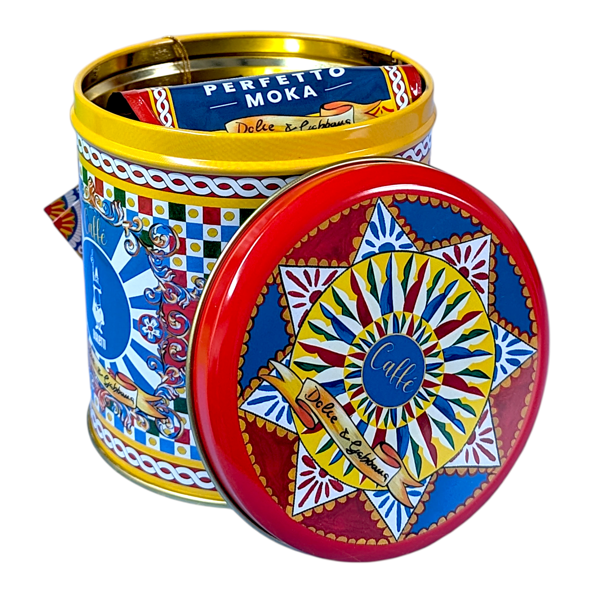 The blend offers a rich aroma, full body, and satisfying intensity, perfect for moka pot brewing and those who prefer a deeper roast profile. The decorative tin reflects Dolce & Gabbana’s signature Sicilian style, making it both practical and collectible.